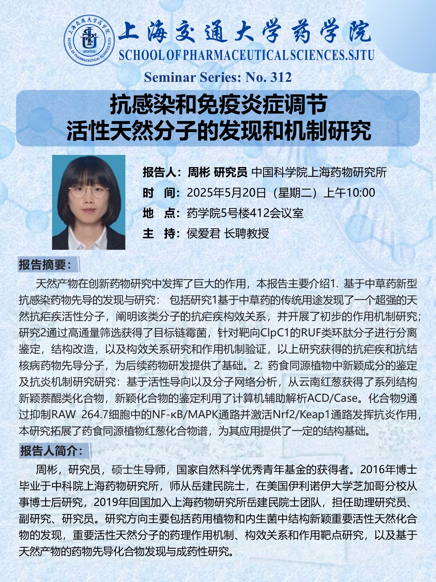 抗感染和免疫炎症调节活性天然分子的发现和机制研究